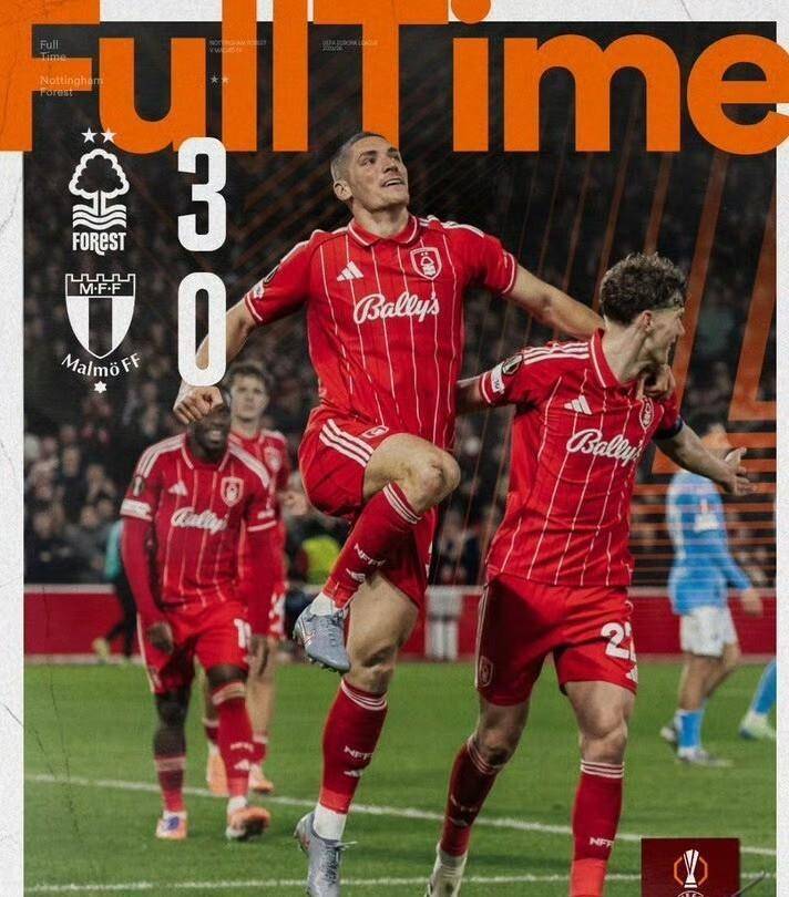 诺丁汉森林在主场3比0完胜瑞典的马尔默。为新帅戴奇打入第三球的是米伦科维奇,他在下半场抢点补射破门。这场胜利让诺丁汉森林在新帅戴奇上任后的4场比赛中取得了2胜2平的不败战绩,球队士气正盛。
