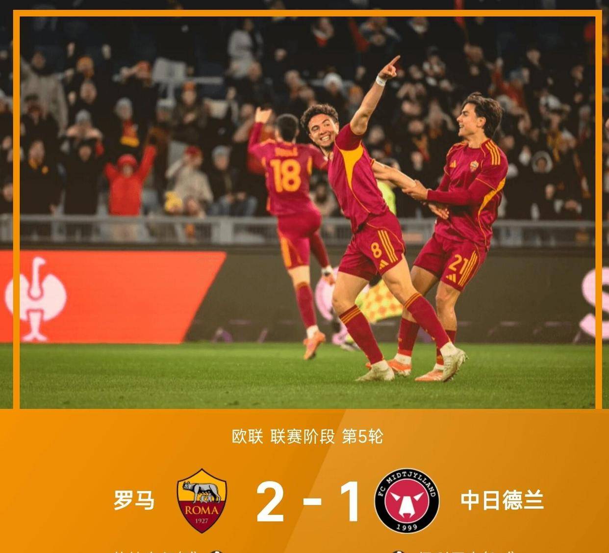 罗马主场与本届赛事最大“黑马”中日德兰的对决无疑是本轮焦点。赛前,中日德兰以4战全胜的战绩高居积分榜首位,而罗马仅排在第18位。最终罗马2比1力克中日德兰,这场胜利让罗马的排名跃升至第14位,保留了晋级希望。
