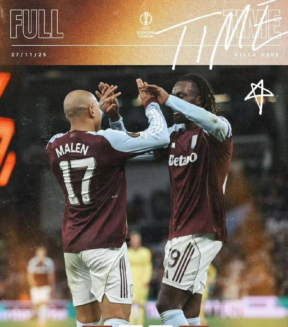 阿斯顿维拉在主场有惊无险地以2比1击败了瑞士超的年青人队。为维拉打入全部进球的是荷兰前锋马伦,他在第27分钟头球破门首开记录,随后又在半场结束前带球长驱直入完成推射,上演梅开二度。凭借本场胜利,阿斯顿维拉在2025年保持的欧战主场全胜纪录得以延续。