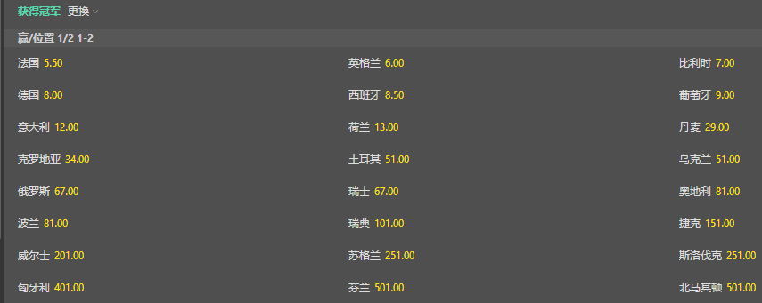 1972年比利时欧洲杯:季军1980年意大利欧洲杯:亚军1984年法国欧洲杯:小组未出线年荷兰、比利时欧洲杯:小组未出线年世界杯,马丁内斯和他的弟子们在俄罗斯的土地上让所有人都认识到了比利时黄金一代的强大。最终拿下世界杯季军让人们对这支兵强马壮的比利时更加充满期待。比利时队中可谓是大牌云集,德布劳内就是这些大牌中最耀眼的那颗星。这位中场指挥官刚刚帮助曼城夺下英超冠军,并率领“蓝月亮”队史首次杀入欧冠决赛。在比利时国家队,“丁丁”也是球队的大脑。有了他的调度组织,比利时队的战术打法显得更为高效。“小魔兽”卢卡库是国际米兰本赛季重回意甲巅峰的功臣之一。36轮联赛,卢卡库打入22球,效率颇高。不单单是进球效率,卢卡库的战术地位同样重要。在国家队,卢卡库是比利时的锋线支柱。比利时队在本届欧洲杯上被分入了B组,同组的球队包括芬兰,俄罗斯和丹麦。这个小组比利时的实力是鹤立鸡群的,“欧洲红魔”在黄金一代的带领下这个夏天的目标必然是站上欧洲之巅。竞彩官方开出的冠军游戏玩法中,法国奖金为3.75(5月27日),英格兰奖金为6.0(5月27日),比利时奖金为6.0(5月27日),如果选择这三个热门球队作为投注对象,每个球队投入100元,如果最终法国夺冠最高奖金为375,净盈利为75元;如果最终比利时夺冠,最高奖金为600元,净盈利为300元;如果最终英格兰夺冠,最高奖金为600元,净盈利为300元。