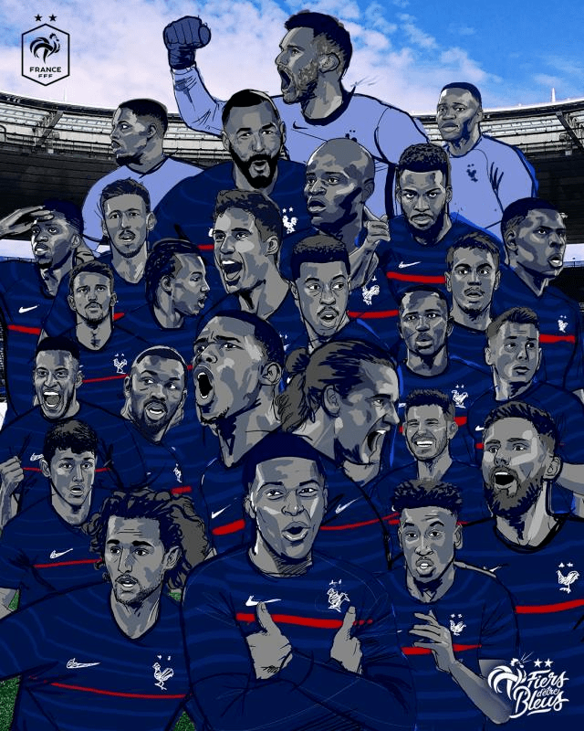 前锋:本·耶德尔(摩纳哥)、本泽马(皇马)、科曼(拜仁)、登贝莱(巴萨)、吉鲁(切尔西)、格列兹曼(巴萨)、姆巴佩(巴黎圣日耳曼)、马库斯·图拉姆(门兴)