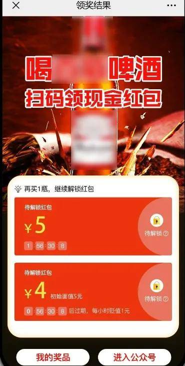 消费者购买C品牌啤酒后,通过扫描促销产品二维码参加活动即可获得返利,返利以现金、优惠券或虚拟货币的形式发放给消费者,让消费者在购买后获得实际的经济回报,从而增加他们的购买满足感和忠诚度。
