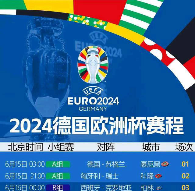 6月15日凌晨3点,揭幕战将是德国与苏格兰的较量,这个时间点相对友好,至少观众可以先睡一觉再来观看比赛,避免打哈欠揉眼睛的尴尬场面!
