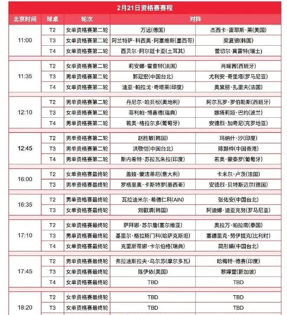 2月21日,是本届新加坡大满贯资格赛的收官日。今天将进行资格赛第三轮也是最后一轮的较量,所有晋级正赛的选手名单将全部产生。赛程从上午11点开始。一些焦点对阵包括:韩国名将、世乒赛混双冠军梁夏银对阵墨西哥选手阿塞维斯;中国台北新星张佑安对阵俄罗斯个人中立选手、大运会冠军希德仁科。