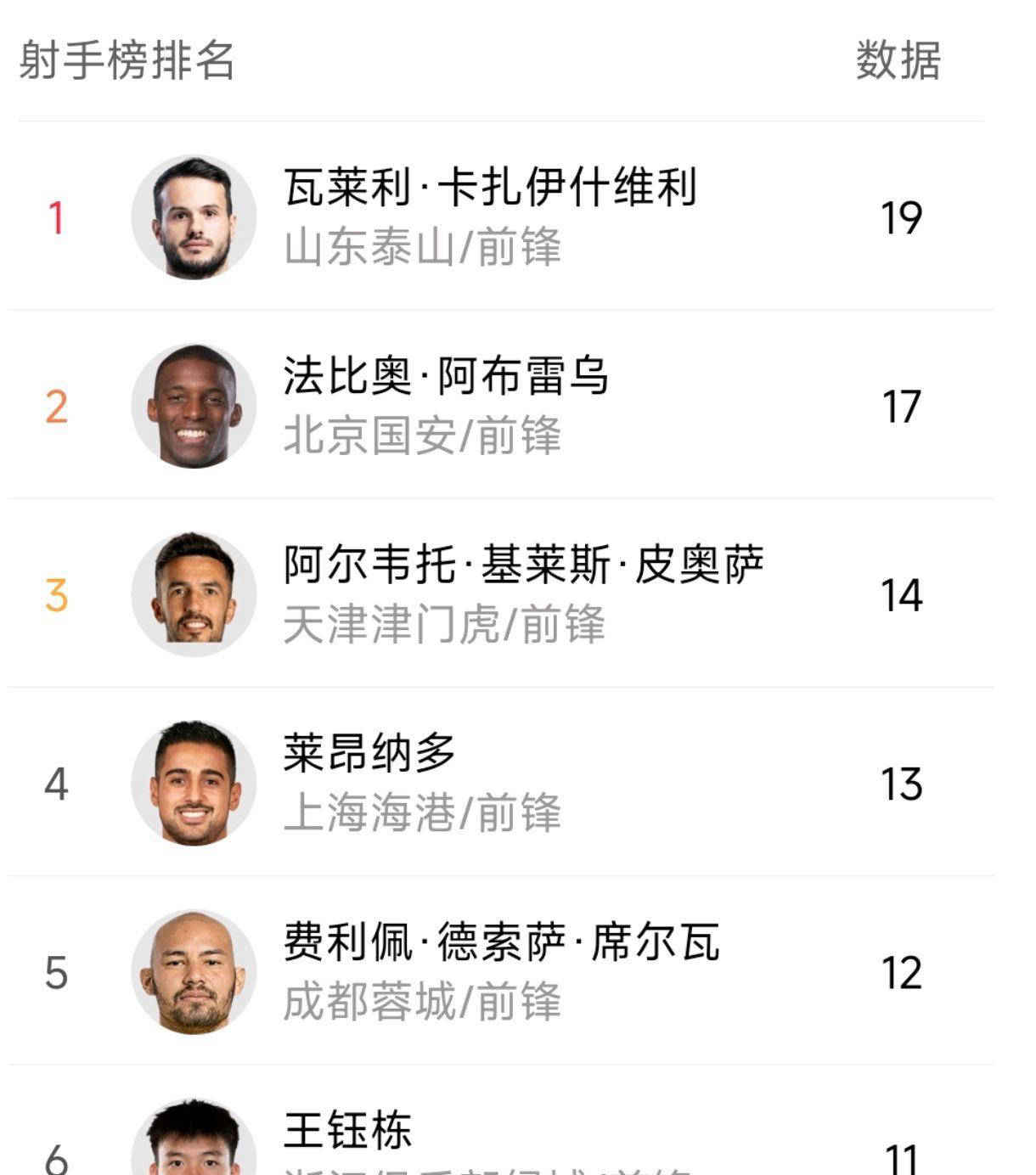 五大联赛,五大联赛直播,英超直播,西甲赛程,意甲比分,德甲预测,法甲分析/全网最全五大联赛资讯平台,涵盖英超、西甲、德甲、意甲、法甲直播入口、赛程积分、实时比分与专家预测分析,手机电脑均可访问!中超联赛在第23轮的比赛后,射手榜依旧由外籍球员主导。山东泰山的中场外援瓦科以19个进球稳居榜首,前五名皆为洋枪。而在本土球员中,唯一能够进球数达到双位数的,便是来自浙江队的18岁超新星王钰栋。