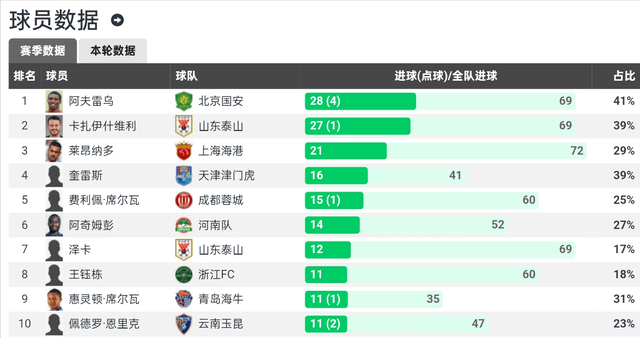 北京国安前锋法比奥-阿布雷乌以28球(含4点球)夺得中超2025赛季的金靴,山东泰山前锋卡扎伊什维利以27球(含1点球)屈居第二,其实卡扎伊什维利才是本赛季中超非点球进球最多的球员。山东泰山前锋克雷桑和河南中场纳萨里奥以9次助攻并列中超2025赛季的助攻王。返回搜狐,查看更多