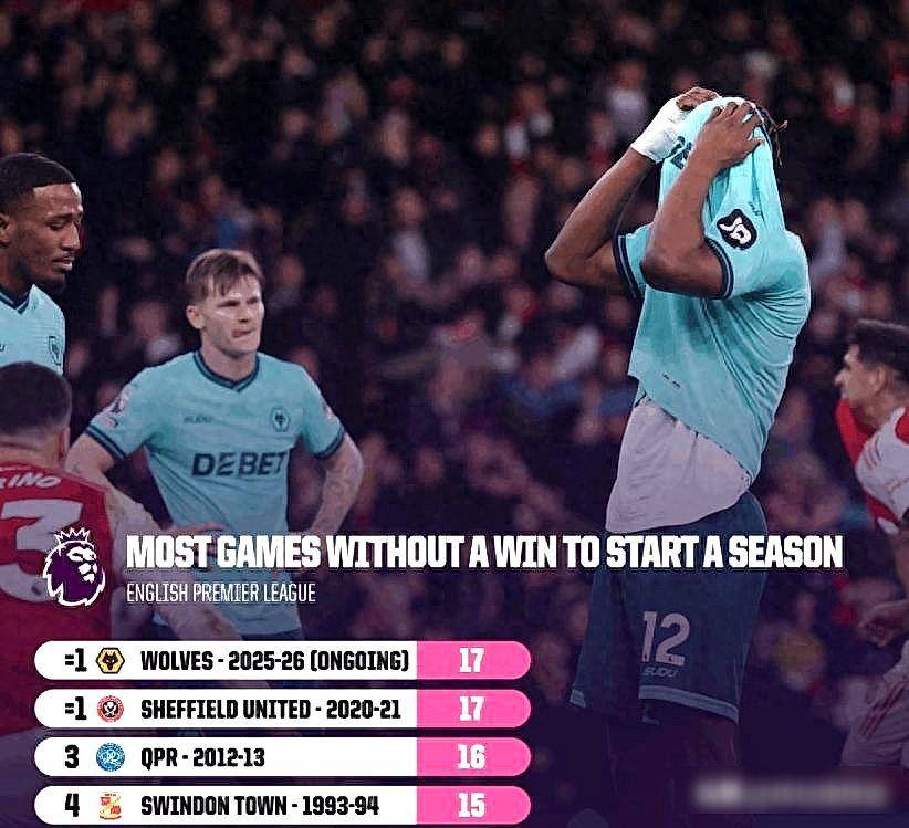 要是再往大了说,在整个英格兰联赛层面,狼队这17轮2分的成绩,也挤进了开局最差的行列,跟纽波特郡、谢菲尔德联队这些球队一起,成了历史的“注脚”。这哪是踢球,这简直就是一场数字上的灾难。