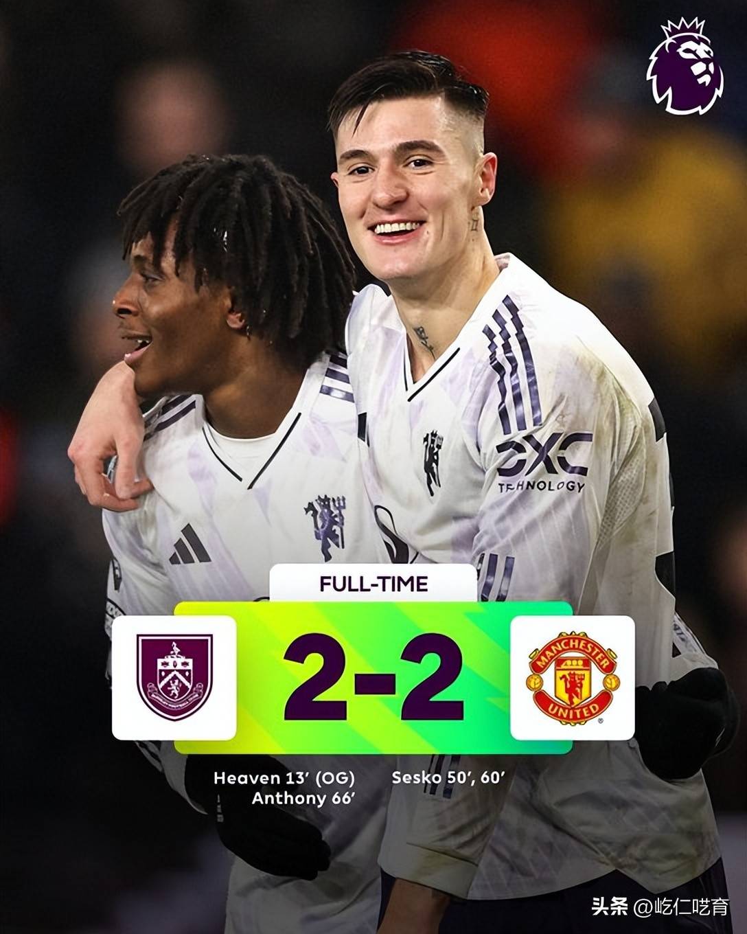 而到了下半场,双方似乎才终于都找到了进球状态--第50&60分钟谢什科的梅开二度,一度曾让曼联在客场取得了2-1的领先。只不过,糟糕的防守终究还是曼联最大的敌人、第66分钟杰顿-安东尼的进球,帮助伯恩利将比分扳平为2-2。