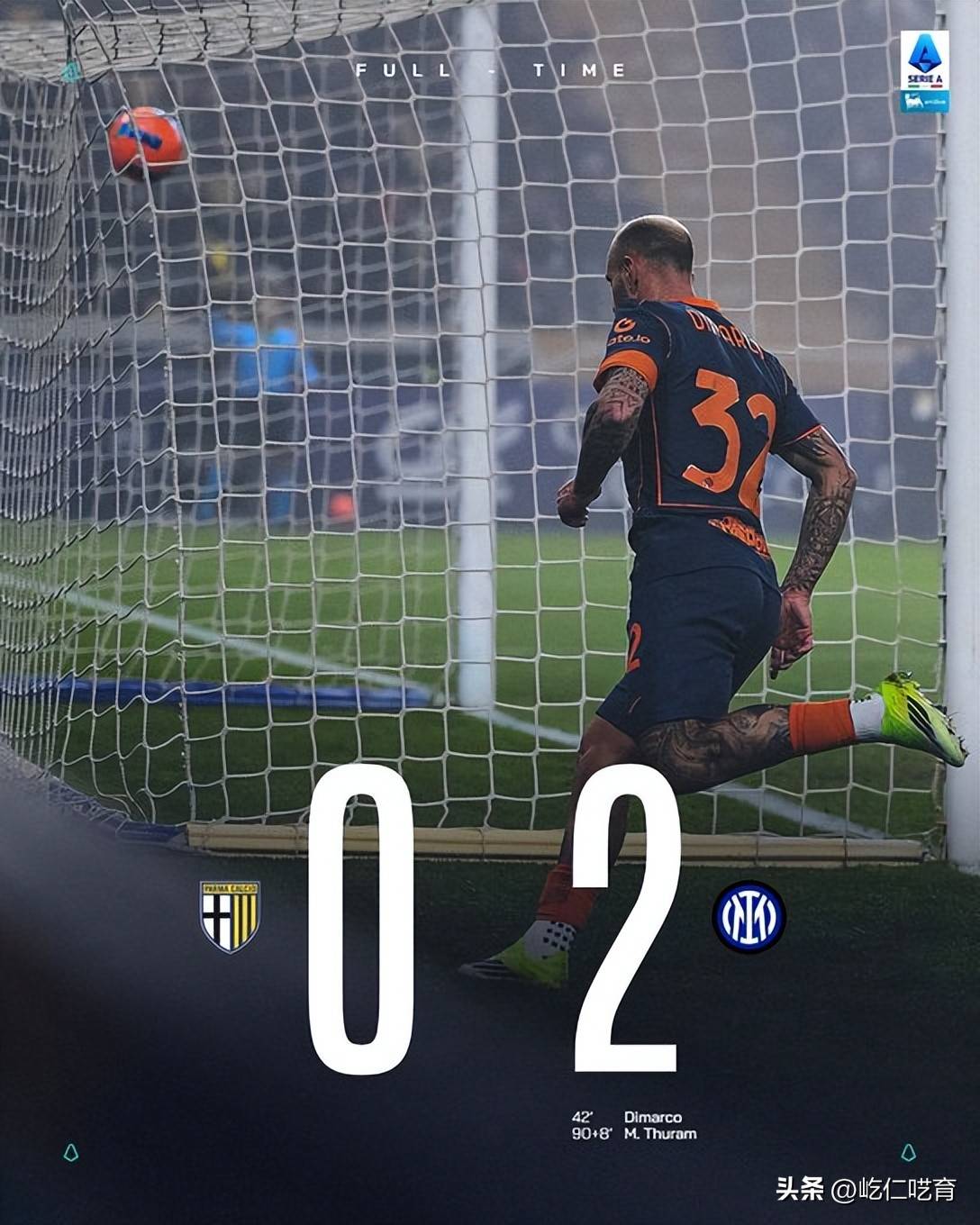 客场作战的蓝黑军团,在本场的两粒进球都到来的很晚--上半场第43分钟,迪马尔科的进球才让国米客场首度建立了领先;而直至补时阶段的90 8分钟图拉姆的进球,国米才在客场以2-0的比分击败了帕尔马拿到了本场的最终胜利。