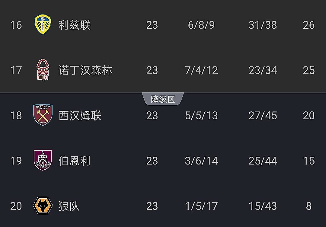 另外,目前狼队在英超联赛的表现并不理想,本赛季前23轮比赛中,仅取得1场胜利,另外22轮联赛则是5平17负,目前排在积分榜最后一位,落后保级区17分之多,在联赛仅剩15轮的情况下,想要追回15分的差距,难度非常高。所以说,下赛季狼队很可能会降级到英冠联赛,因此徐彬短期内想要踢上英超联赛的可能性也是非常低的。