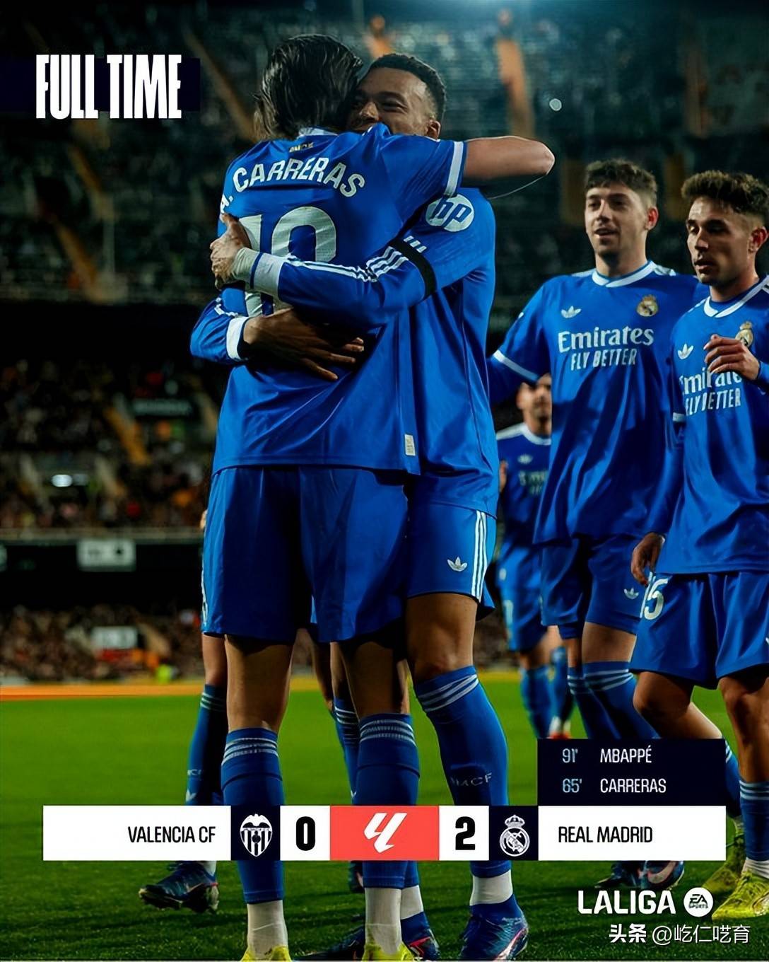 而到了下半场第65分钟,卡拉雷斯的进球终于成功帮助皇马打开了进球账户建立了客场领先;到了第90 1分钟,姆巴佩的进球则是帮助皇马终于客场建立了2-0的领先并最终收获了本场的最终胜利。