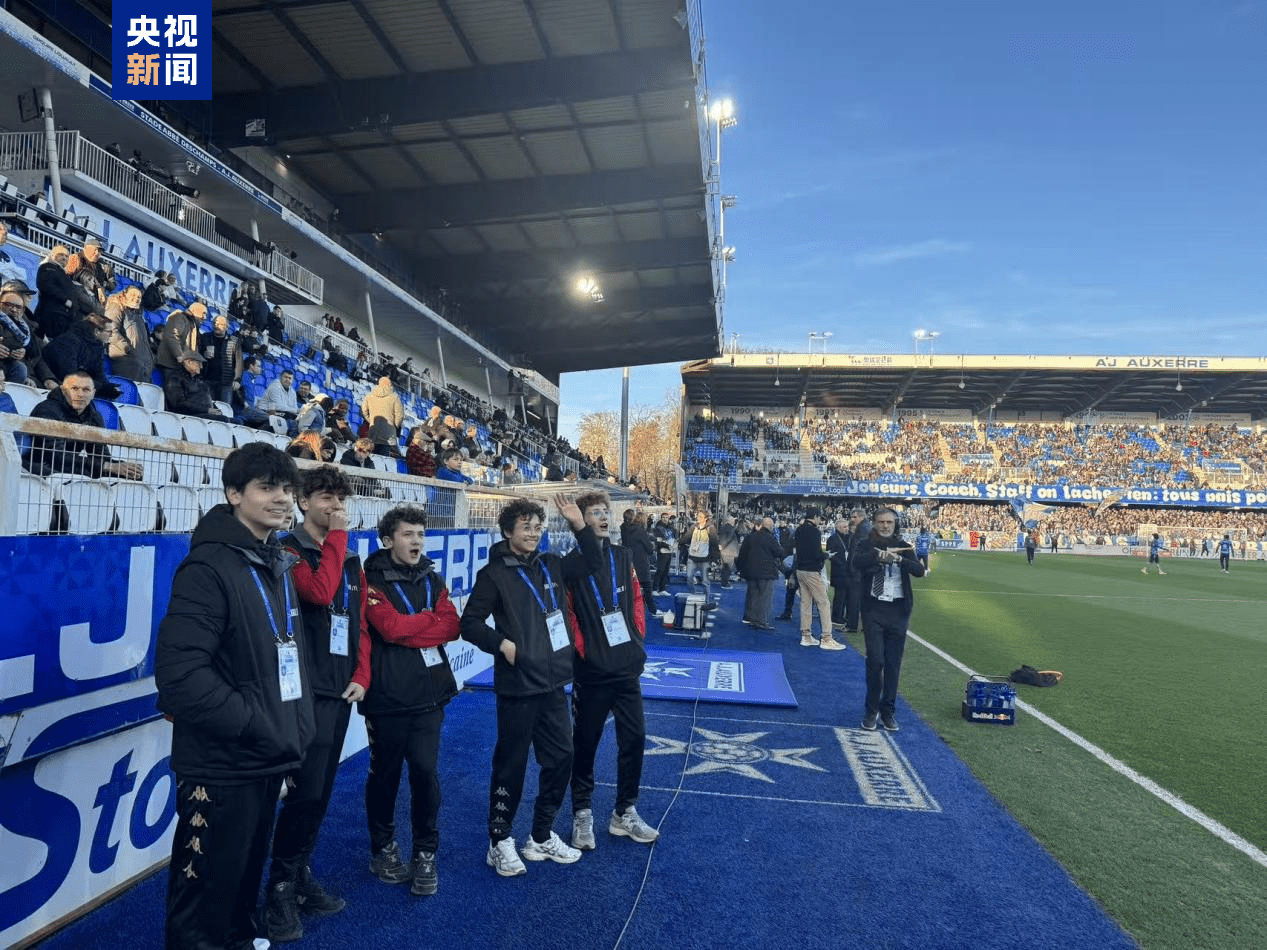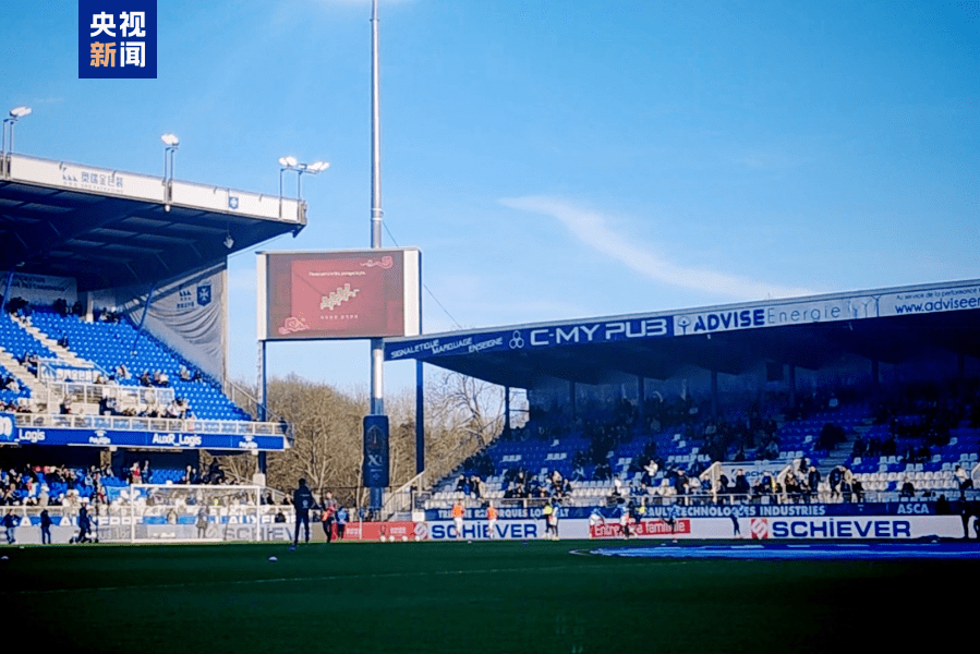 总台记者 朱雪松:这里是法国中北部城市欧塞尔的阿贝德尚足球场。在当天的法甲联赛欧塞尔队主场迎战巴黎FC的比赛中,场内外多块大屏循环播放总台2026年春晚宣传片,把浓浓的年味带到了法甲的绿茵场。